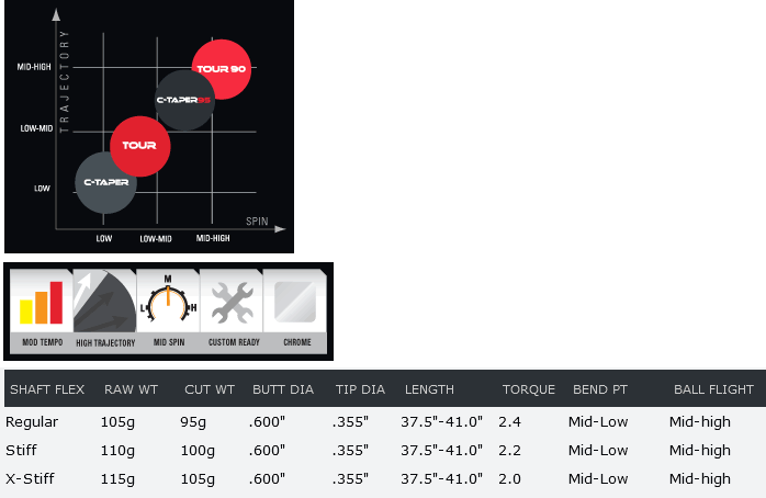 现在最为流行的铁杆杆身 KBS ,它无论在顶级的巡回赛职业球手或者业余爱好者,都一样受欢迎!在今年12月,新款KBS TOUR C- TAPER95 正式上市,这是一款在日本限量发行的C-TAPER轻量级杆身,比常规的C-taper轻了13%。杆身采用镀铬亮处理,不同于常规的磨砂面。