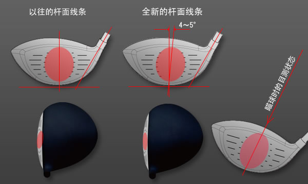 通过将杆身插入杆头上更靠近根部的位置,提高挥杆过程中杆头的离心力,从而提升飞行距离。杆面沟槽的位置正对着瞄球时的视线方向。面向目标,可以实现轻松自在的瞄球,为流畅地挥杆做贡献。